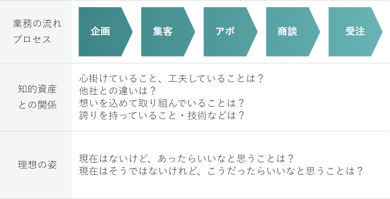そこで当社では、もっとシンプルに「業務の流れとそのプロセス」と「それを支える知的資産」を再確認するものとしています。