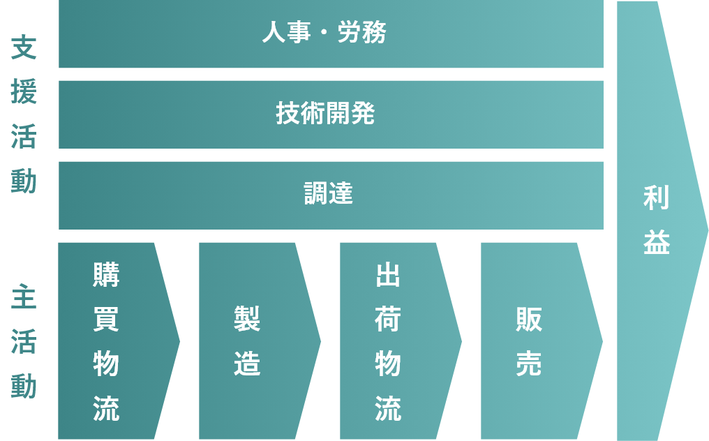 バリューチェーンとは、一般的には企業の活動が最終的にどんな価値を生み出し、どのように貢献しているのかといった関係を示すフレームワークです。