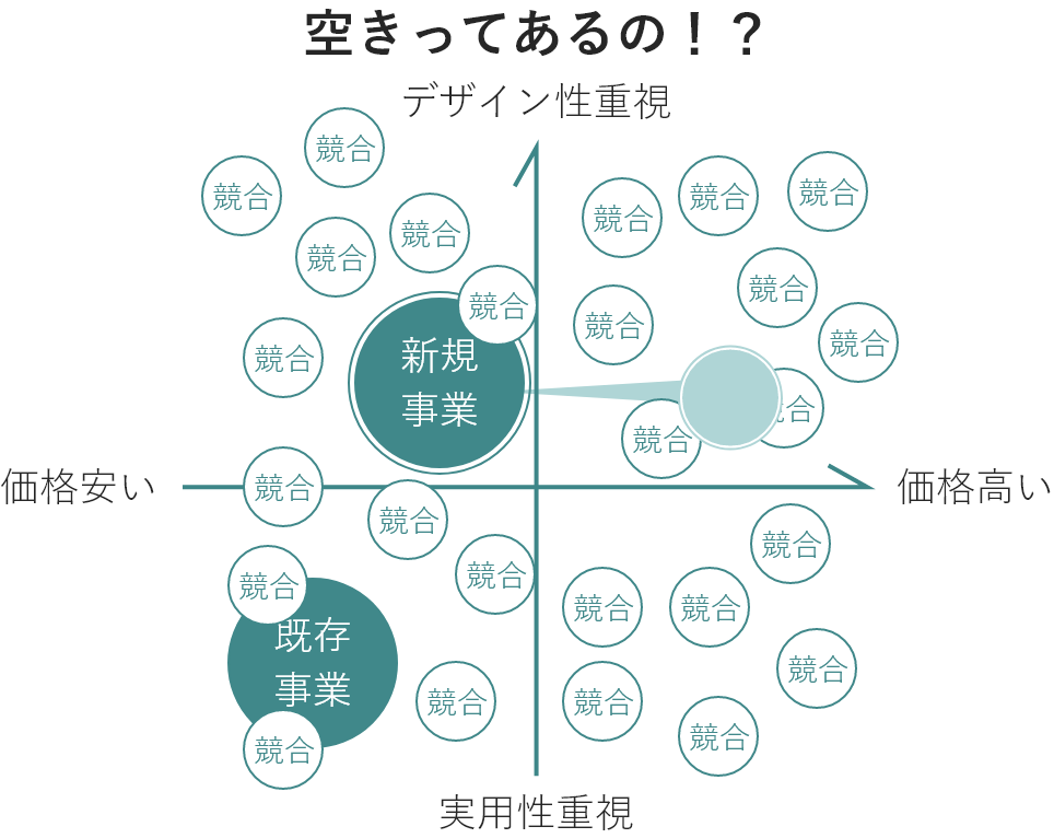 「競合と競争に勝つためにポジションを探す」といった目的だと、多くの場合空きが無いんじゃないでしょうか。