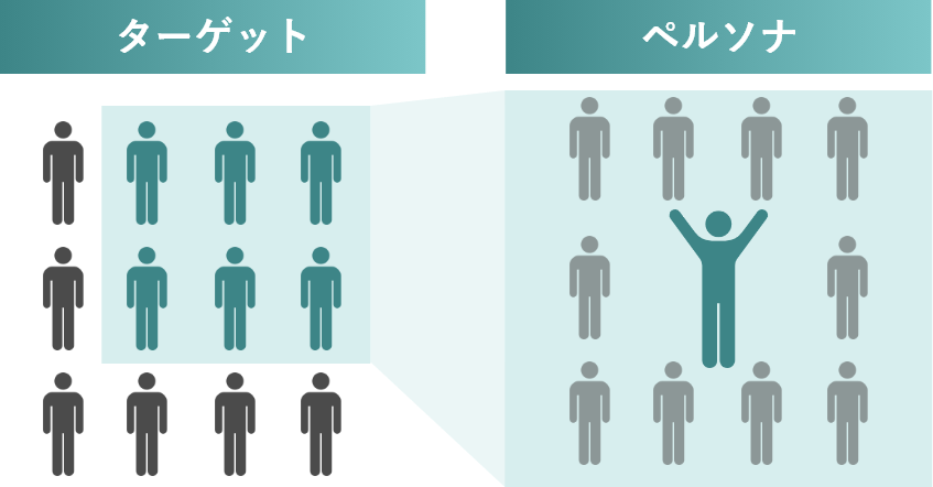 ペルソナとは、属性だけのターゲットではなく、趣味や嗜好、行動パターンまで設定したものであり、より具体的な人物像です。