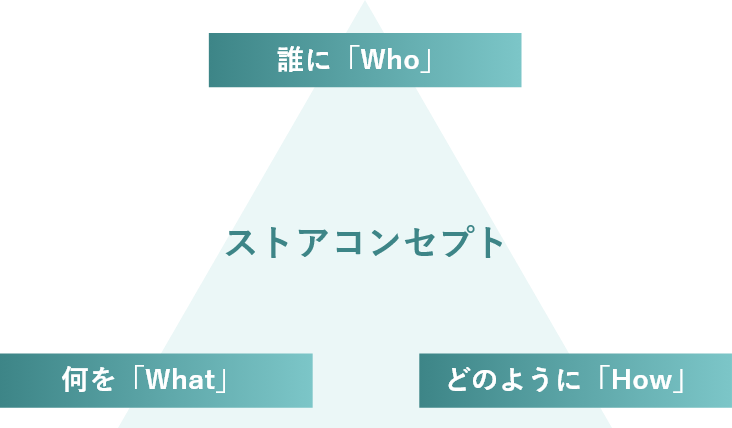 ストアコンセプトとは、店舗の基本理念のことで、「誰に」「何を」「どのように売るか」という3軸でとらえるのが一般的です。