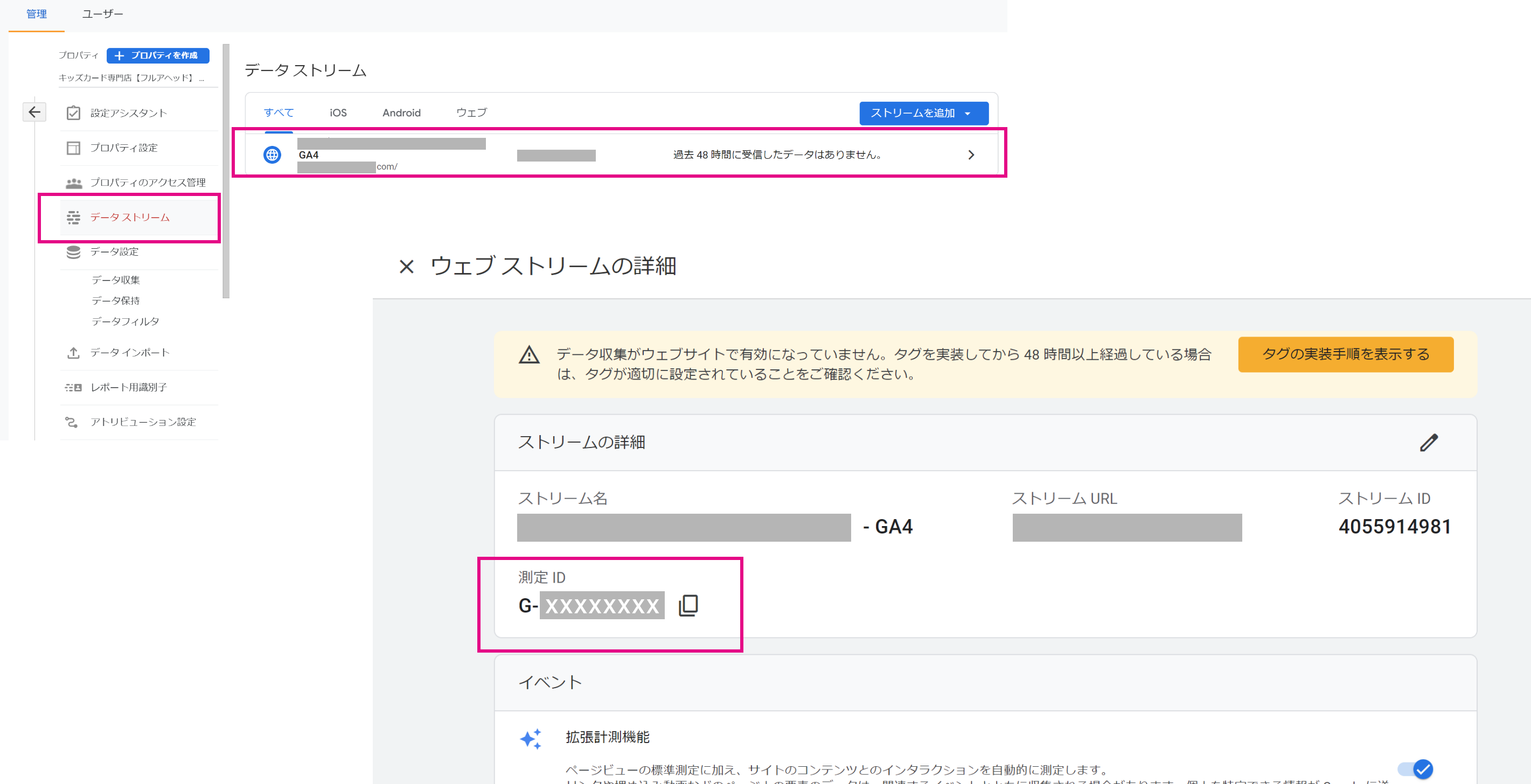 5.[すべて]の中のURLをクリックします。【G-XXXXXXXXXX】が測定IDです。