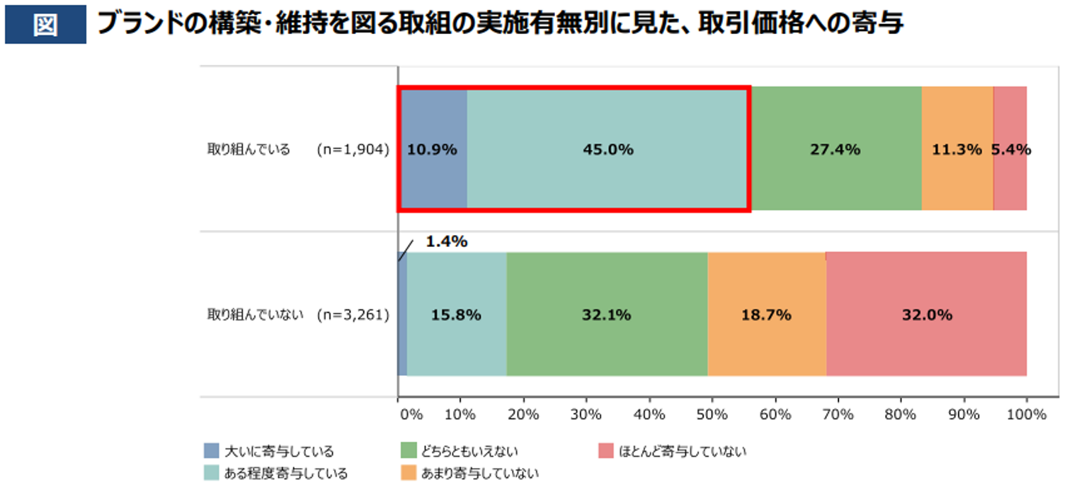 ブランドの構築・維持を図る取組を行っている企業は、自社ブランドが取引価格へ寄与している割合が高い。
