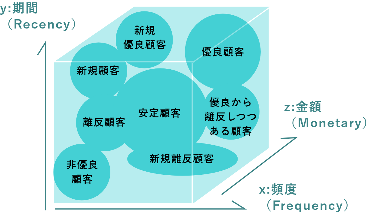 顧客の性質にあわせたマーケティング施策を実践するために有用で、顧客分析の基本ともいえる分析手法の1つです。