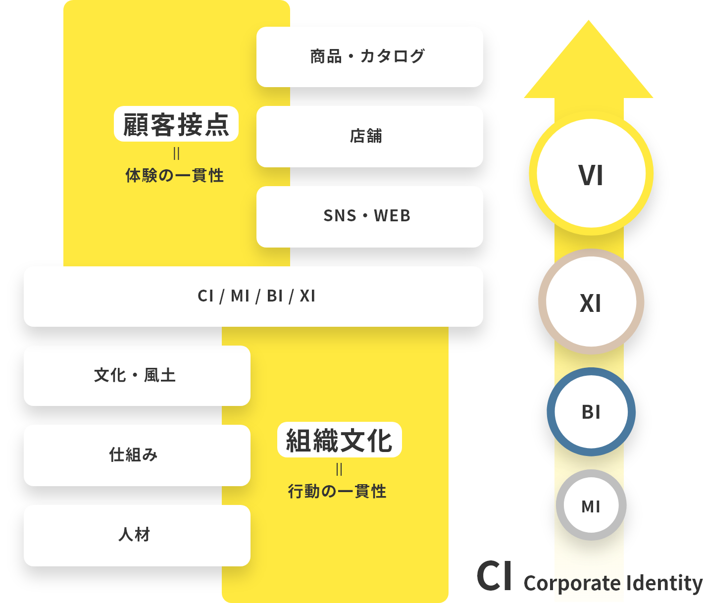 まとめると、CIはただの外見の改善ではなく、企業の内側から外側に至るまでの一貫した品質と体験を提供することで、企業のブランド力を高めるために不可欠です。企業としての一貫した行動が、顧客に安定した高品質な体験を届け、長期的な成功につながるのです。