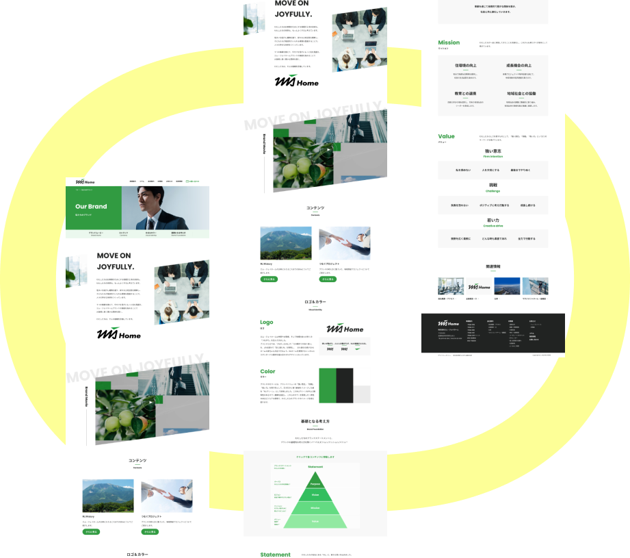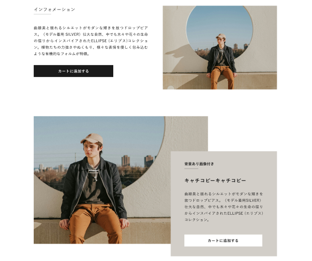 TOPページ以外のページでも、ブランドイメージに合わせたカスタムデザインの作成が可能です。
