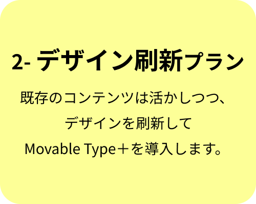 Movable Type のライセンス、サーバー利用料、サーバー管理、CMS やOS /ミドルウェアのアップデート、メールでのテクニカサポートをすべて含み、月々5,000円から利用可能。大規模サイトに対応できる上位プランもご用意しています。
