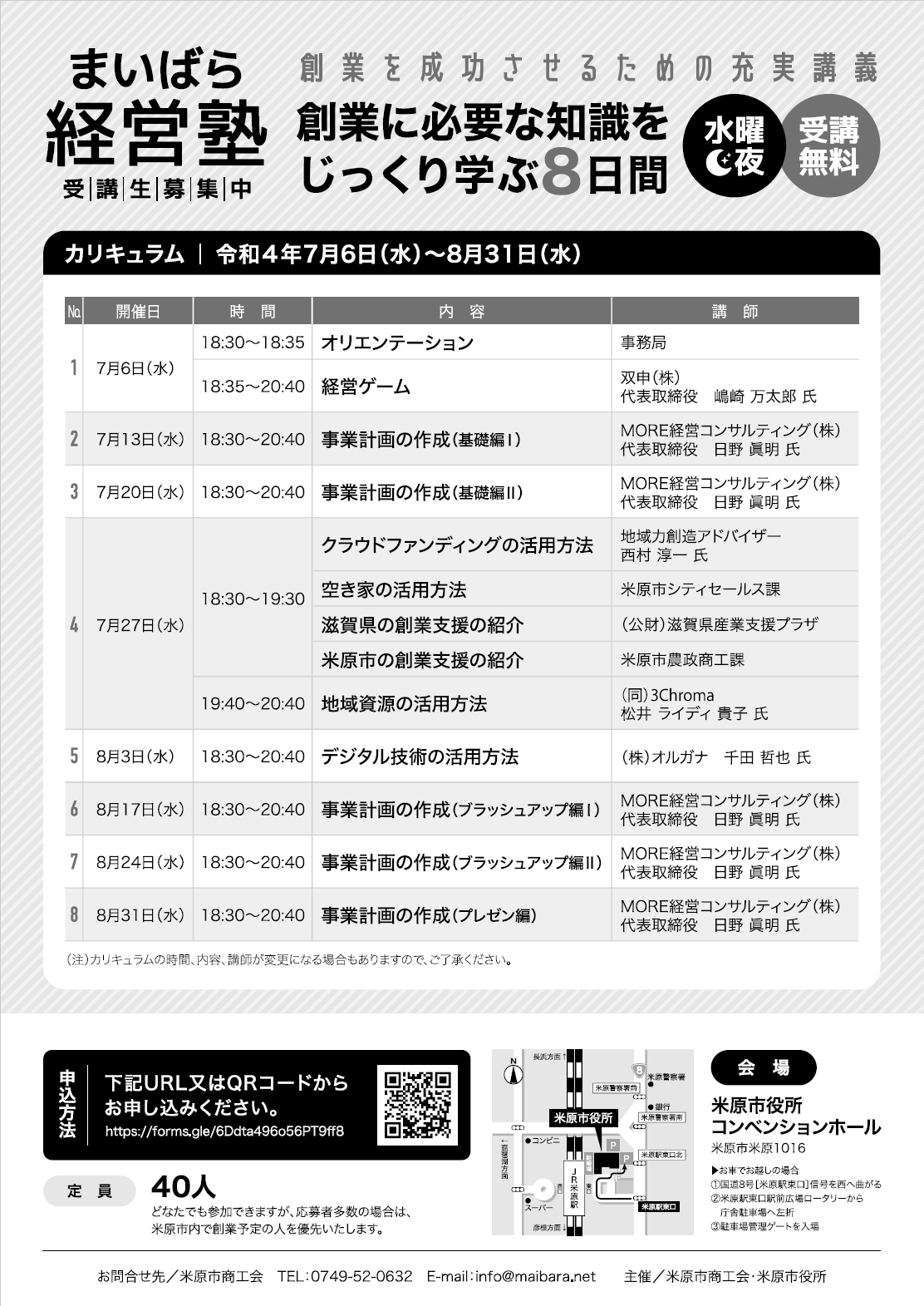 『【創業支援】まいばら経営塾(無料講座)』の講師を務めます。