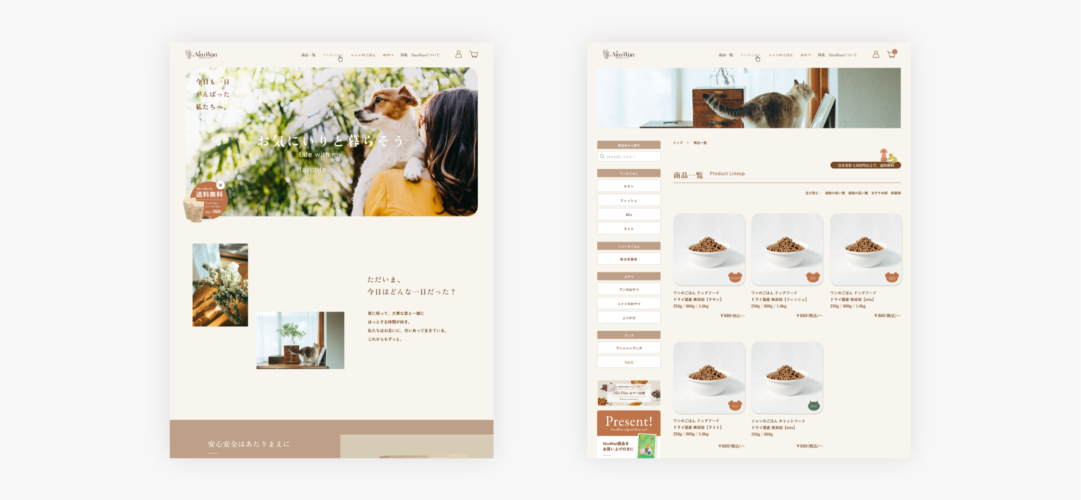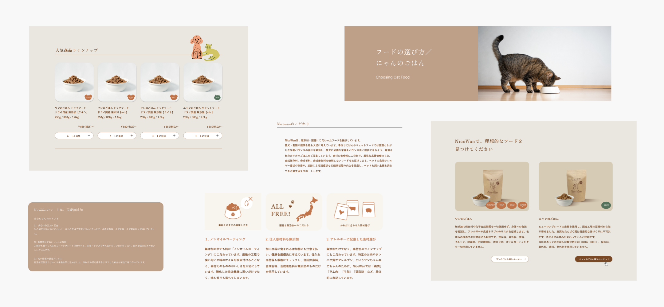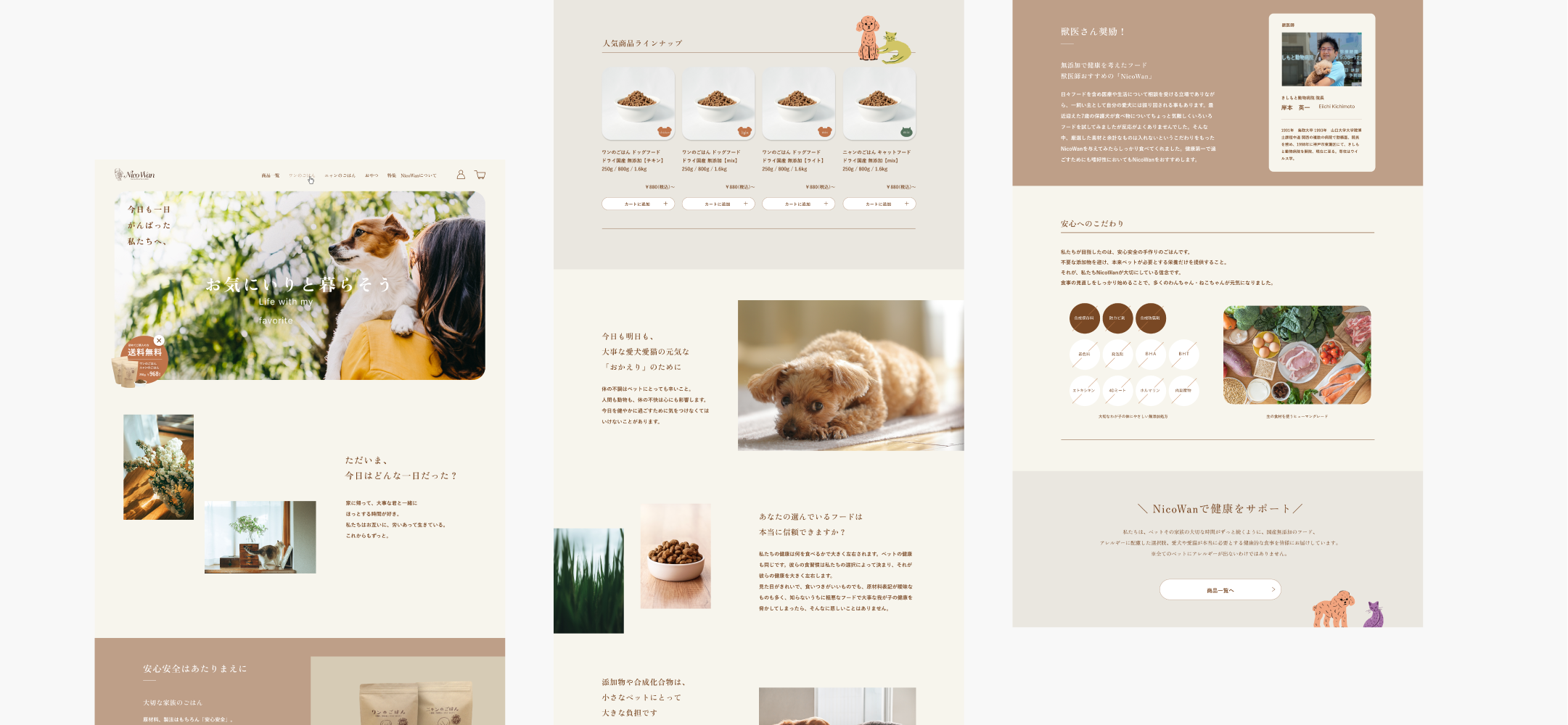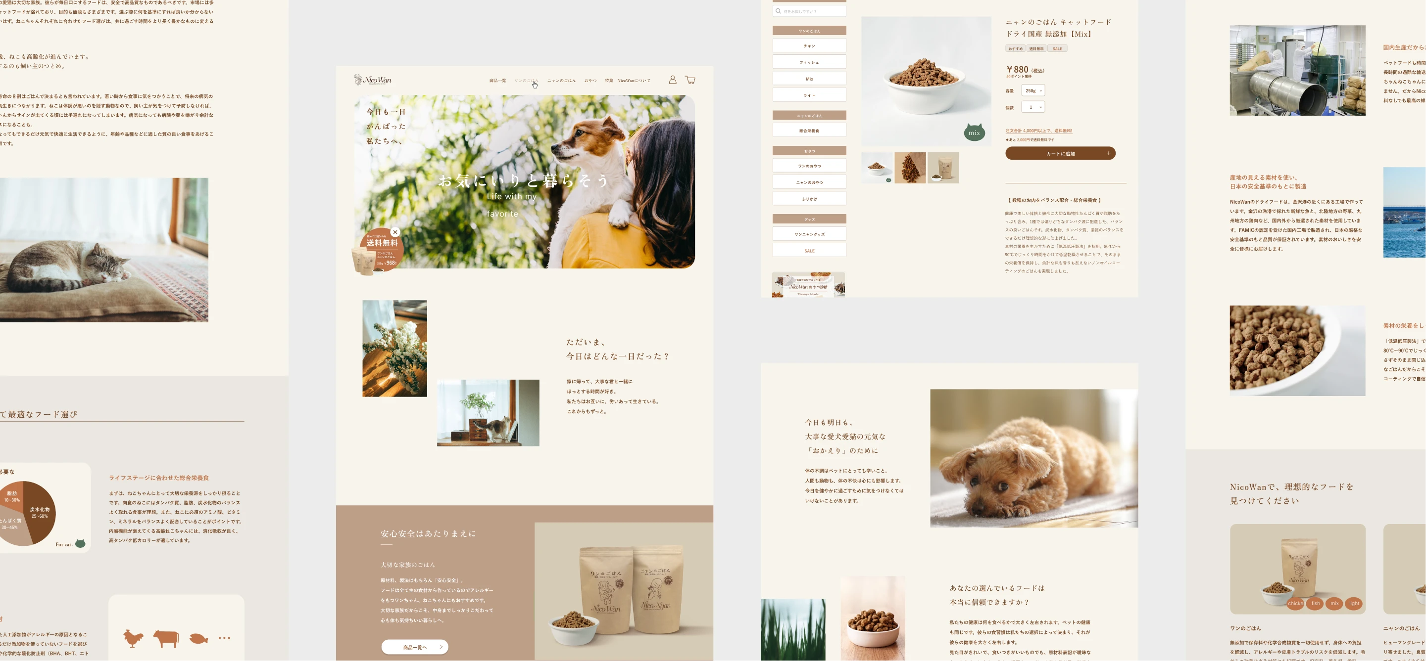 「お気に入りと暮らすことが人も動物も元気にする」という信念に基づいて、ペット用品を製造・販売しているnicowan。商品をつくる上で大切にしている、その信念まで伝えられるように、現状の通販サイトをEC機能を持ったブランドサイトへと再構築しました。
