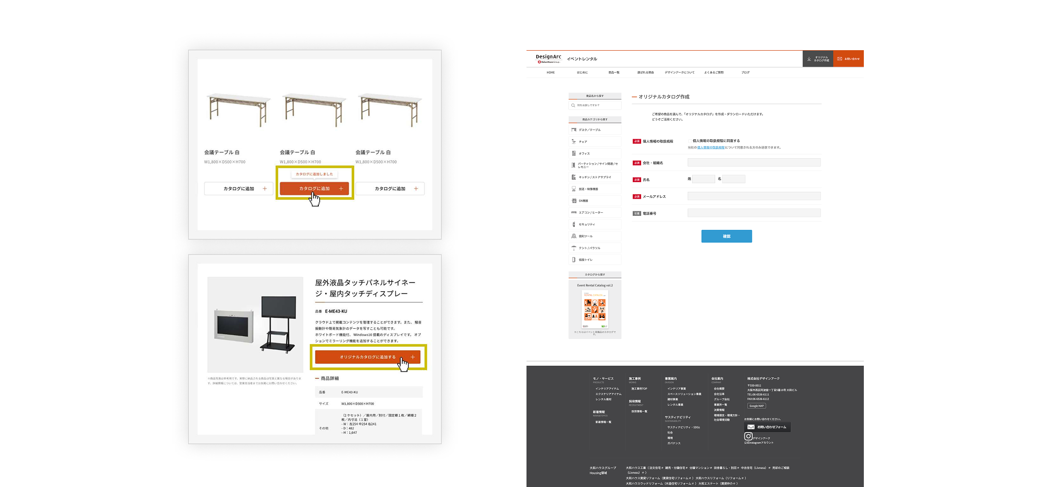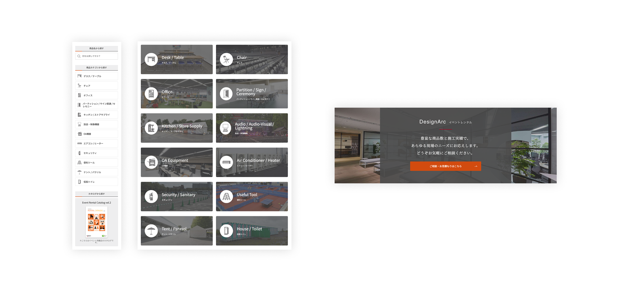 デザインアーク様のレンタル事業部では、展示会・イベント・商業施設などで使用される什器・家具・備品のレンタルを幅広く展開されています。従来、Webサイトは主に製品情報を掲載する「カタログ的な存在」に留まっており、マーケティングから営業導線までを意図した設計にはなっていませんでした。