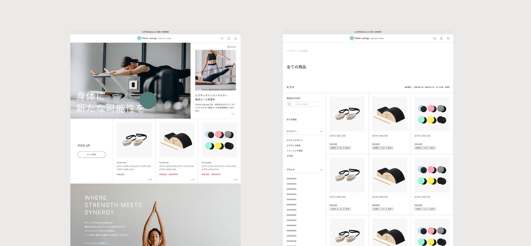 ブランドの再定義も兼ねたECサイト制作として、単なる商品を掲載するだけのサイトではなく、Pilates Synergyさまの理念を表現できる構成を検討。